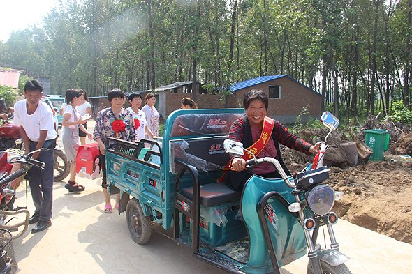 在鄉(xiāng)村振興中,商水縣郝崗鎮(zhèn)大張旗鼓地對評選出的6名“好婆婆”、15名“好媳婦”、8戶“孝賢之家”、582戶“十星級文明戶”進行表彰,旨在在全鎮(zhèn)樹立文明新風導向,傳播孝老敬老、誠實守信理念。圖為8月22日,剛剛受到表彰的西黃村“好媳婦”郝愛榮滿面春風地行駛在鄉(xiāng)間道路上。