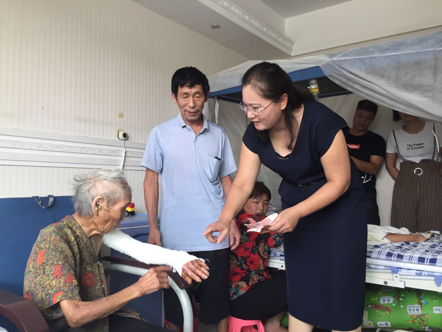 8月26日,駐村第一書記劉春華和村脫貧責(zé)任組組長李小林懷著感激之情,為周口燒傷醫(yī)院送去錦旗兩面。周口燒傷醫(yī)院長張巋說:“幫扶工作是黨的工作,縣、鄉(xiāng)、村干部的真心幫扶,我們醫(yī)院也應(yīng)當(dāng)發(fā)揮扶貧濟(jì)困的作用,盡一些社會責(zé)任,為貧困的群眾做點(diǎn)好事,解決他們的實(shí)際困難”,院方當(dāng)即決定贈送給李二俊老太太2000元現(xiàn)金營養(yǎng)費(fèi)?!?/p>