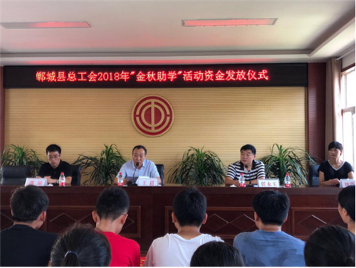 8月30日上午,鄲城縣總工會2018年“金秋助學”活動助學金發(fā)放儀式在縣總工會五樓會議室舉行。