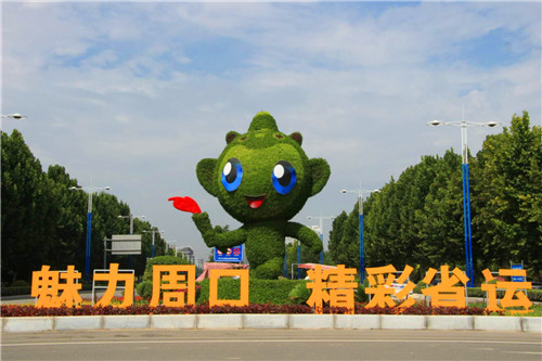 當日上午,記者在東新區(qū)周口大道與文昌大道交叉口看到,巨大的運動會吉祥物造型“泥娃”正在招手,向每一位路人致意?!镑攘χ芸冢适∵\”的口號立于泥娃兩側,引人注目。中心路口的轉盤花壇內(nèi)已煥然一新,五顏六色的花朵正以嬌艷的姿態(tài),歡迎四海賓朋共聚周口。