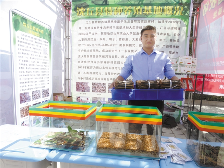 9月22日,沈丘縣舉辦第一個中國農(nóng)民豐收節(jié)慶?;顒樱瑏碜匀h22個鄉(xiāng)鎮(zhèn)(辦事處)的35家農(nóng)民種植、養(yǎng)殖合作社和家庭農(nóng)場,展示了槐山藥、黃金梨、冬棗、木瓜、“袖珍”黃瓜、活體蜈蚣、蝎子等120余個品種。