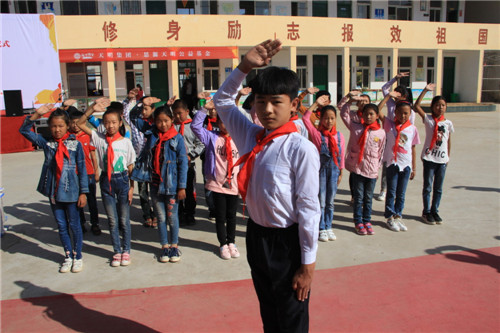 神圣而又雄壯的國(guó)歌響起了。孩子們瞪大了眼睛,小擎旗手猛地甩出臂膀,將耀眼的五星紅旗撒在陽(yáng)光下,全體孩子們行少先隊(duì)隊(duì)禮,注視著國(guó)旗冉冉升起。孩子們的歌聲越來越嘹亮,直到最后還在高喊:“前進(jìn),前進(jìn)進(jìn)……”