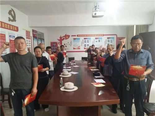 “我志愿加入中國共產(chǎn)黨,擁護黨的綱領(lǐng),遵守黨的章程,履行黨員義務(wù)……”在汲水鄉(xiāng)張嶺行政村室,汲水鄉(xiāng)黨委副書記王申帶領(lǐng)全體黨員面對黨旗,一起重溫入黨誓詞,并學習黨章黨規(guī)。