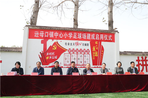 啟用儀式上,該縣遜母口鎮(zhèn)中心小學(xué)的學(xué)生們愉快地表演了足球操,少先隊(duì)員分別向領(lǐng)導(dǎo)和嘉賓佩戴紅領(lǐng)巾表達(dá)感恩之情。河南省第十三屆人大代表張華女士代表足球場(chǎng)捐建單位講話。張華說(shuō),當(dāng)前,隨著脫貧攻堅(jiān)深入開(kāi)展,家鄉(xiāng)的各項(xiàng)事業(yè)蓬勃發(fā)展。作為遜母口鎮(zhèn)的一員,看到家鄉(xiāng)這些年翻天覆地的變化,感到特別喜悅。作為一名省人大代表,為助力家鄉(xiāng)脫貧攻堅(jiān),同時(shí)落實(shí)“脫貧攻堅(jiān)人大代表在行動(dòng)”號(hào)召,便決定投資50萬(wàn)元為遜母口鎮(zhèn)中心小學(xué)建立一個(gè)高標(biāo)準(zhǔn)的踢足場(chǎng),滿足孩子們踢足球的愿望。