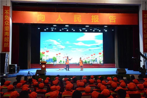 在當(dāng)天的會議上,全體與會人員首先集中觀看了短片《向人民報告》,詳細全面地總結(jié)回顧了“代人民管理城市”理念實施一年來的工作,對上年度民意調(diào)查結(jié)果和城市管理成果向人民進行報告,對今年度的民意調(diào)查進行分析研判,對下一步城市管理工作進行了安排部署,并對城市管理先進單位、環(huán)衛(wèi)工作先進單位、優(yōu)秀環(huán)衛(wèi)工人、城市管理工作先進個人進行表彰。