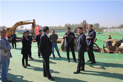 在大廣高速周口港區(qū)互通立交建設(shè)項(xiàng)目施工現(xiàn)場(chǎng),孫紅偉一行查看了施工方采取的環(huán)保措施,向施工方負(fù)責(zé)人了解施工進(jìn)度,并針對(duì)項(xiàng)目推進(jìn)過(guò)程中的環(huán)保工作,提出了具體要求。