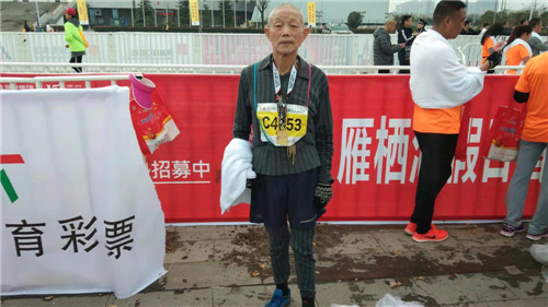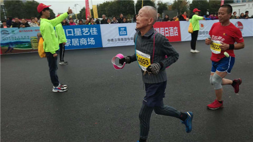 當(dāng)日上午10時許,孔祥義老人堅持跑完了半程馬拉松21.0975公里的路程,臉上露出滿意的笑容。