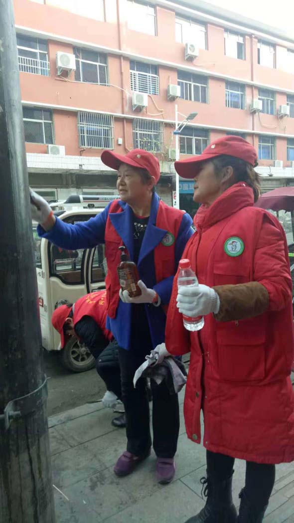 前來參加活動的劉愛青和岳巧玲兩位老人今年都是61歲,她們在清理小廣告的時候,動作麻利,做事認(rèn)真,直到把每一個小廣告清理的干干凈凈才才肯罷手。