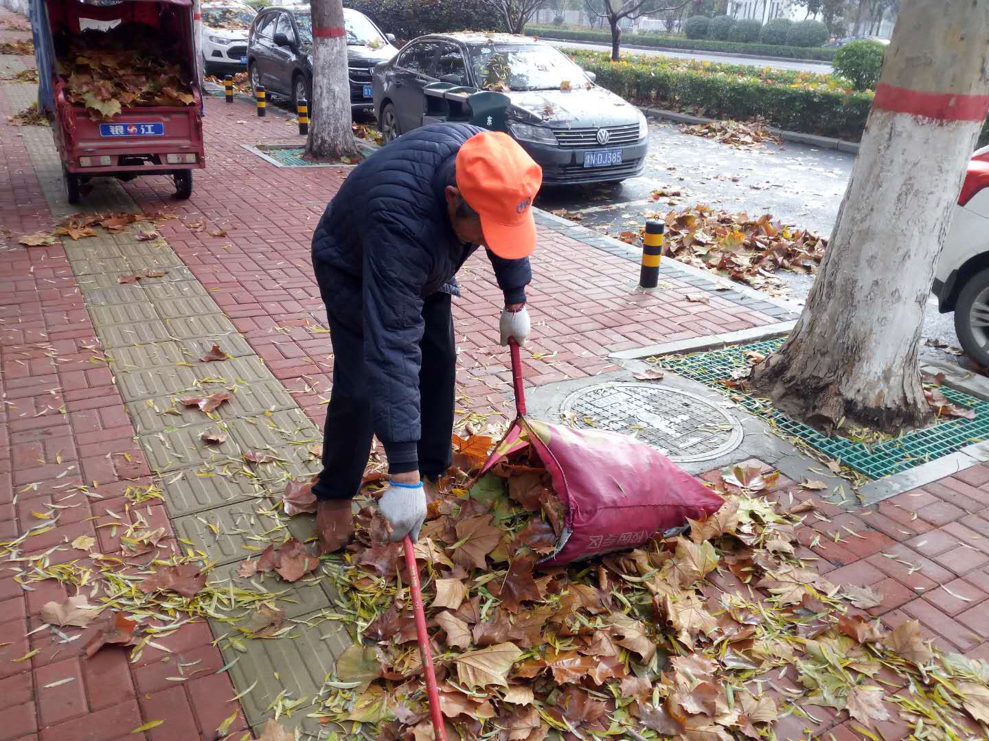 12月3日晚上,周口市中心城區(qū)風(fēng)急雨驟,樹葉落了一地。4日上午天放晴,環(huán)衛(wèi)工人紛紛上街清掃落葉。負(fù)責(zé)興旺路的環(huán)衛(wèi)工人告訴記者,他以前兩個(gè)小時(shí)就能打掃完,而當(dāng)天他干了3個(gè)小時(shí)還沒(méi)有干完,估計(jì)還得再干1個(gè)多小時(shí)。圖為環(huán)衛(wèi)工人在清掃落葉。