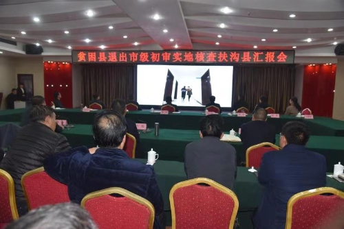12月3日,貧困縣退出市級(jí)初審實(shí)地核查扶溝縣匯報(bào)會(huì)召開(kāi)。市級(jí)初審第一實(shí)地核查組組長(zhǎng)劉哲,副組長(zhǎng)毛立營(yíng)、王啟輝、李濤、齊長(zhǎng)軍、陳強(qiáng),監(jiān)督員周萌,聯(lián)絡(luò)員豆筱倩,扶溝縣領(lǐng)導(dǎo)盧偉、張峰、段然、趙紅亮等出席會(huì)議??h委副書(shū)記、政法委書(shū)記張峰主持會(huì)議。