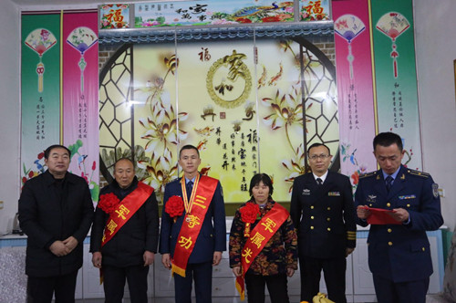 軍地聯(lián)手鑼鼓喧天送喜報,功臣家人披紅戴花受尊崇??战当娔巢渴翘丶売⑿埸S繼光生前所在部隊,今年以來,先后有4名周口籍官兵在各類重大演訓任務(wù)中立功受獎,為了使軍人的榮譽向官兵家庭拓展、向全社會輻射,該部決定開展“功耀門楣送喜報進家門”活動,利用12月14日、15日兩天時間,選派專人成立“報喜”小分隊,為我市4名官兵家庭送去立功喜報和慰問金。