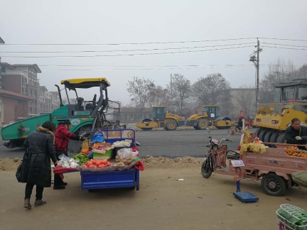 記者今日走訪漢陽路中段(穎河路-建設路)看到,目前該路段機動車道已鋪上黑色的混凝土物質(zhì),人行道則是壓實過的土路。壓路機等設備??吭诘缆穬深^,并未啟動,有兩臺挖掘機及數(shù)十名工人在人行道上,鋪設下水道。施工路段內(nèi),有不少菜販在沿街叫賣。