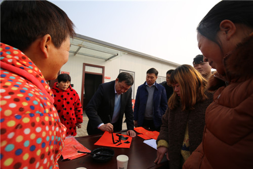 依然是在年末歲初的冬日暖陽里,12月20日中午1時(shí)30分,區(qū)委書記李宗喜再次來到川匯區(qū)小橋辦事處興業(yè)社區(qū),和10名書法家一起,現(xiàn)場為社區(qū)居民寫春聯(lián)送祝福。
