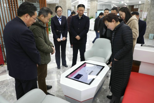 調研組一行首先來到商水農(nóng)商銀行陽城支行查看“普惠+數(shù)字”銀行建設情況。陽城支行行長簡要介紹該網(wǎng)點基本情況、服務理念后,引導調研組一行依次參觀了普惠授信服務區(qū)、數(shù)字智能服務區(qū)、電子銀行體驗區(qū)、保管箱服務區(qū)、貴金屬服務區(qū)等特色功能區(qū),并詳細介紹了每個功能區(qū)的作用和特點。調研組一行現(xiàn)場體驗了智能導覽臺 、客戶互動桌等智能設備,對該網(wǎng)點定位準確、理念前衛(wèi)、設備先進、功能齊全、分區(qū)合理,為客戶提供全方位的金融服務表示贊賞。
