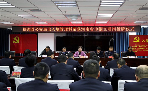 12月26日,扶溝縣長(zhǎng)張穎波向榮獲河南省“巾幗文明崗”的縣公安局出入境管理科授牌儀式在縣公安局九樓會(huì)議室舉行。副縣長(zhǎng)任松奎,縣政府黨組成員、縣公安局局長(zhǎng)田豪杰,縣公安局政委石偉等出席授牌儀式。