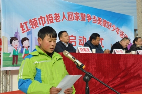 12月29日下午,在商水縣姚集鎮(zhèn)舉行的“紅領(lǐng)巾接老人回家暨爭當(dāng)美德好少年”活動 啟動儀式上,姚集鎮(zhèn)盧廟小學(xué)六年級學(xué)生張吉慶用幼稚童音朗誦的《用愛接爺爺奶奶 回家》,感動了在場的來自各鄉(xiāng)鎮(zhèn)的數(shù)百名鄉(xiāng)村干部?!昂⒆又v的好,我們一定配合 鄉(xiāng)政府把獨居老人戶清零工作做好做實,讓老人們年年過暖冬?!睖f鄉(xiāng)中心校長戚 二中會后告訴記者。