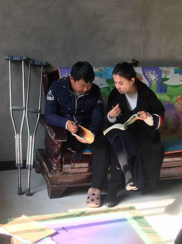 陳陽買來學(xué)習(xí)資料和字帖,劉璐璐買來練習(xí)題,讓丁振偉學(xué)習(xí)。
