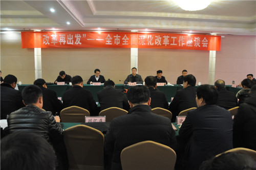1月9日,“改革再出發(fā)”— 全市全面深化改革工作座談會(huì)在商水召開。會(huì)議對(duì)40年來(lái)全市改革開放取得的顯著成績(jī)和變化進(jìn)行暢談式總結(jié)回顧,對(duì)今后一個(gè)時(shí)期深化改革工作進(jìn)行相互啟發(fā)式思考謀劃。