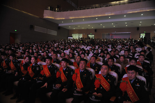 熠熠金盾耀新春,崢嶸歲月訴衷腸。1月24日晚,鹿邑縣文化中心大會堂里座無虛席,鹿邑縣公安部門在這里隆重舉行“2018忠誠記憶”職業(yè)榮譽頒獎儀式??h領導李剛、李國際、雷申、侯自峰、陳巍、何新敏、齊梅英等和公安民警、警屬代表等共千余觀眾在現(xiàn)場共同見證。