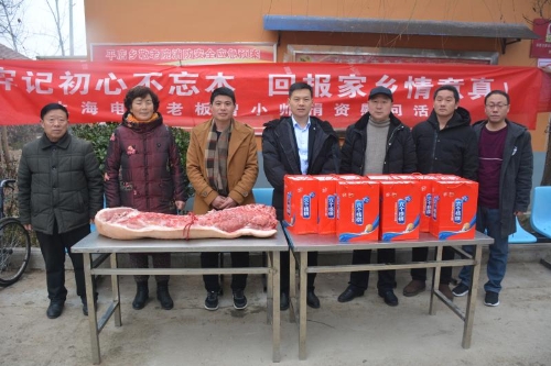 1月30日上午,商水縣平店鄉(xiāng)在曾莊村舉行在外創(chuàng)業(yè)人員曾小帥獻(xiàn)愛心、送溫暖捐贈儀式。