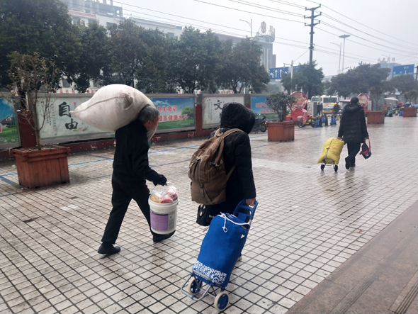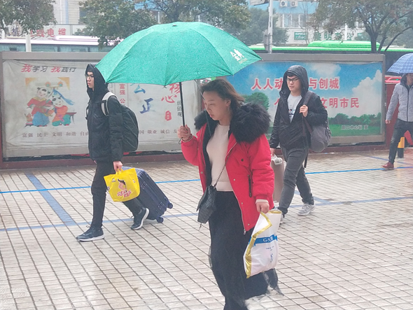 1月30日,農(nóng)歷臘月二十五,上午下起了大雨,在周口汽車客運總站,一些從外地返鄉(xiāng)的乘客加快了回家過年的步伐。