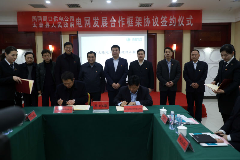 2月13日,太康縣人民政府與周口市供電公司舉行電網(wǎng)發(fā)展合作框架協(xié)議簽約儀式。周口市供電公司總經(jīng)理郭雷、副總經(jīng)理靳玉林,紀(jì)委書記、工會(huì)主席張浩,太康縣領(lǐng)導(dǎo)王國璽、董鴻、喬偉等出席簽約儀式??h委常委、縣委辦公室主任董鴻主持簽約儀式。