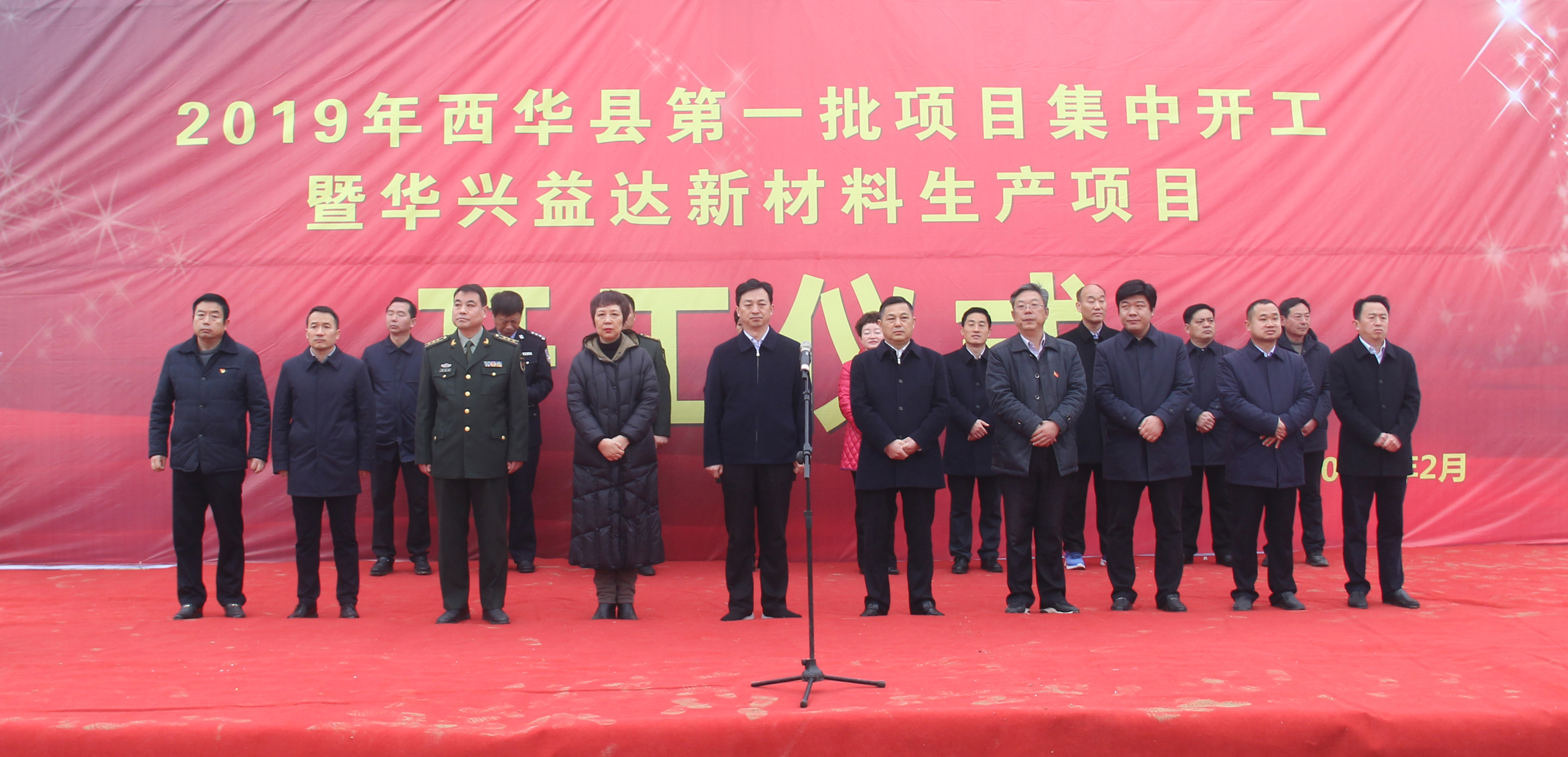 2月26上午,西華縣2019年第一批項(xiàng)目集中開工儀式在華興益達(dá)新材料生產(chǎn)項(xiàng)目建設(shè)工地舉行??h領(lǐng)導(dǎo)林鴻嘉、田慶杰、周曉燕、郭峰、胡軍華、李濤、郝清俊、王獻(xiàn)超、張曉偉、楊鳳臣、王衛(wèi)東及其他縣處級領(lǐng)導(dǎo)干部出席開工儀式,各鄉(xiāng)鎮(zhèn)辦及縣直各部門主要負(fù)責(zé)同志,各項(xiàng)目施工單位代表參加開工儀式。