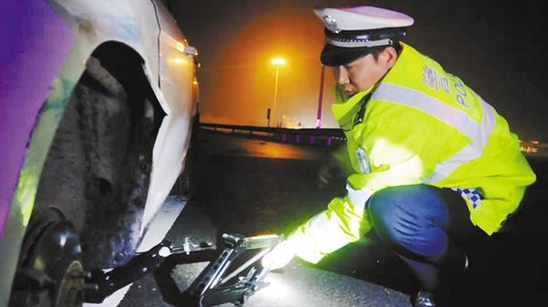 王凱偉通過(guò)詢問(wèn)得知,司機(jī)張先生幫忙送朋友的妻子和孩子回西華老家,不料車(chē)輛拋錨在半路上。由于沒(méi)有維修經(jīng)驗(yàn),張先生將沒(méi)了氣的輪胎卸下后無(wú)法將備胎安裝上。雨夜高速公路上停車(chē)不安全,張先生和車(chē)內(nèi)人員都心急如焚。