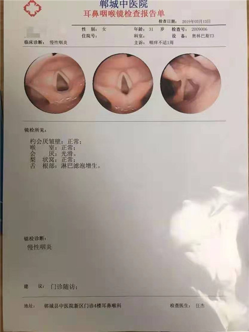 鄲城縣中醫(yī)院為進一步提高耳鼻喉臨床診療水平,更好地為廣大耳鼻喉患者服務(wù)。近日,新引進的纖維喉鏡系統(tǒng)(奧林巴斯T3)及工作站等設(shè)備正式調(diào)試完成,并投入使用。3月13日,完成第一例病人診療報告打印。