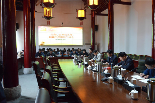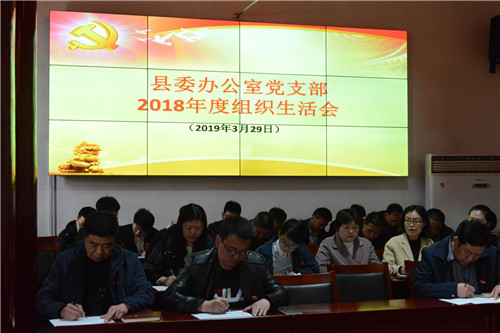 3月29日下午,鹿邑縣委辦公室黨支部召開2018年度組織生活會并開展民主評議黨員活動。縣委書記梁建松,縣委常委、辦公室主任宋濤以一名普通黨員身份參加會議??h委辦公室機關全體同志參加會議。