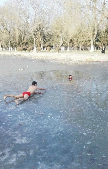 去年1月1日,甘肅省金昌市龍泉公園內(nèi)一名6歲男孩墜入湖中冰窟。在附近游玩的王保華見狀,毫不猶豫地脫掉厚重的冬衣,只剩一條紅褲頭,躬身走上了冰面。接近男孩時(shí),他匍匐在冰面上,在同伴的幫助下,奮力把編好的藤條遞向在水中掙扎的男孩 。在其他愛心人士的共同幫助下,男孩最終獲救,而王保華與同伴悄悄離開了。事后,中央電視臺(tái)等媒體紛紛報(bào)道了此事,一時(shí)間,“紅褲頭”救人的事跡,在那個(gè)寒冷的冬天引起了強(qiáng)烈反響。