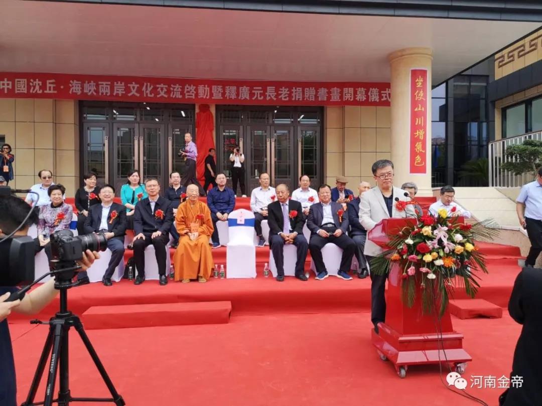 釋廣元長老在致辭中說,多年來雖身在臺灣,卻時刻心系故土,為推動兩岸同胞心靈契合、深化兩岸文化交流中貢獻(xiàn)自己的綿薄之力。希望此次無條件捐贈的藝術(shù)館古今名家書畫數(shù)百幅,能為家鄉(xiāng)文化建設(shè)貢獻(xiàn)微薄之力。同時提議將釋廣元藝術(shù)館更名為“沈丘藝術(shù)館”,為沈丘文化的發(fā)展繁榮注入新的生機和活力。