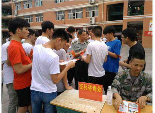 5月25日,淮陽縣征兵政策宣講團進校入班,對全縣六所高中學(xué)校開展宣講活動。效果明顯,當場有參軍意向高學(xué)歷青年報名,人數(shù)成倍增長,周口軍分區(qū)副司令員薛振喜看到這一喜人的成果后說:“大學(xué)生征兵政策宣傳進村入戶進校園入班級這個做法好?!?/p>
