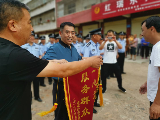 當(dāng)日上午,一臺(tái)挖掘機(jī)停在規(guī)劃好的空地上,警戒線內(nèi)是需要硬化的路面區(qū)域,困擾附近居民出行的問題終于要解決了。附近居民自發(fā)向公安民警和社區(qū)干部送上兩面寫著“創(chuàng)衛(wèi)先鋒 造福百姓”“一心為民 服務(wù)群眾”的錦旗,表達(dá)他們的感謝之情?!叭罕娛莿?chuàng)衛(wèi)的參與者也是受益者,等路面硬化后,希望大家和民警、社區(qū)干部一起將社區(qū)衛(wèi)生打掃好,保持好,為建成高標(biāo)準(zhǔn)衛(wèi)生小區(qū)共同努力?!睏罱苷f。