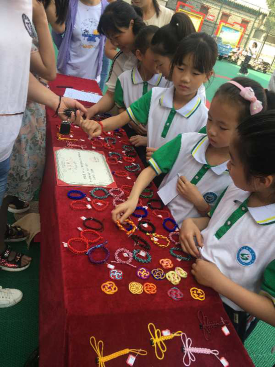 5月25日上午,沈丘縣中國結(jié)第七代傳承人李海花走進(jìn)槐店鎮(zhèn)回民小學(xué),和學(xué)?!爸袊Y(jié)”手工編織興趣班的20名學(xué)生舉行“愛心義賣,情暖校園”主題活動(dòng)。不到半小時(shí),100多件作品被搶購一空還預(yù)定了很多。據(jù)悉,這次義賣共得到1200余元,將全部捐給“槐店鎮(zhèn)中心學(xué)校教育基金”,用來資助該鎮(zhèn)經(jīng)濟(jì)困難師生、獎(jiǎng)勵(lì)優(yōu)秀教師和學(xué)生、資助教育教研等重大活動(dòng)項(xiàng)目。