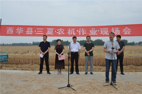 “麥浪滾滾閃金光,秣馬厲兵迎三夏”。值此三夏大忙到來之際,6月1日上午,西華縣農(nóng)機(jī)局在東王營鄉(xiāng)東王營村舉辦三夏農(nóng)機(jī)作業(yè)現(xiàn)場會(huì),周口市農(nóng)機(jī)局黨組書記、局長劉偉,西華縣委副書記、政法委書記程維崢,縣政府副縣長毛茹,東王營鄉(xiāng)黨委、政府主要負(fù)責(zé)同志,各鄉(xiāng)鎮(zhèn)、辦事處分管農(nóng)業(yè)農(nóng)村工作副職,東王營鄉(xiāng)部分村支部書記,縣農(nóng)機(jī)局全體干部職工和部分農(nóng)機(jī)合作社理事長等共80余人參加了演示會(huì)。
