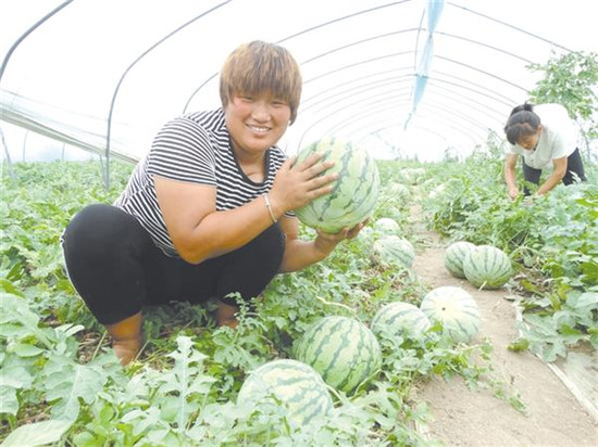 日前,沈丘縣周營鎮(zhèn)一大棚生態(tài)西瓜種植基地內(nèi),村民正在采摘搬運(yùn)西瓜。近年來,在推進(jìn)產(chǎn)業(yè)脫貧過程中,該鎮(zhèn)積極調(diào)整農(nóng)業(yè)產(chǎn)業(yè)結(jié)構(gòu),規(guī)模有序流轉(zhuǎn)土地,科學(xué)種植生態(tài)瓜果。目前,大棚生態(tài)西瓜種植已成為帶動農(nóng)民增收致富的“甜蜜產(chǎn)業(yè)”。