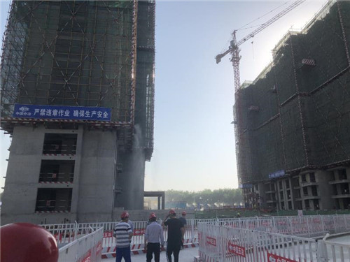 當日下午,記者在金海嘉苑3標段施工現(xiàn)場看到,高聳入云的塔吊有條不紊地作業(yè),施工車輛不時進出,施工人員揮汗如雨緊張施工,一派忙碌的施工景象。工地環(huán)保措施也相當?shù)轿?,樓層噴淋激起水霧彩虹,圍擋及通道噴淋霧狀灑水,車輛進出必須清洗。在項目入口施工顯示牌上,噪音、揚塵等指標均嚴格控制在標準區(qū)間內。