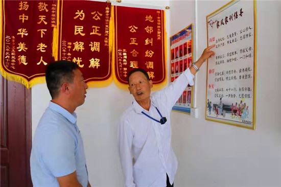 老人說,他是2018年初加入“幸福調(diào)解室”的,“當(dāng)時(shí),我剛從外地回來,路過楊廟看到有人臨街房前懸掛調(diào)解室招牌,就報(bào)名加入了調(diào)解室隊(duì)伍?!?/p>
