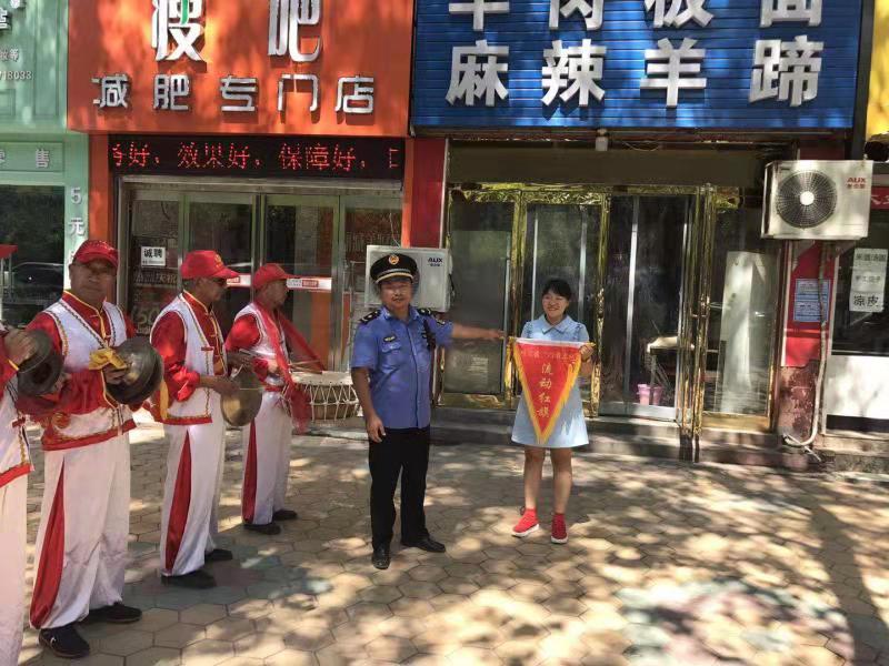 為鞏固創(chuàng)衛(wèi)成果,提高城市精細(xì)化管理水平,川匯區(qū)持續(xù)開(kāi)展“紅黑旗”評(píng)選活動(dòng)。7月22日,在陣陣鑼鼓聲中,該區(qū)城管人員又為6家紅旗商戶(hù)、6家黑旗商戶(hù)分別懸掛紅黑旗。