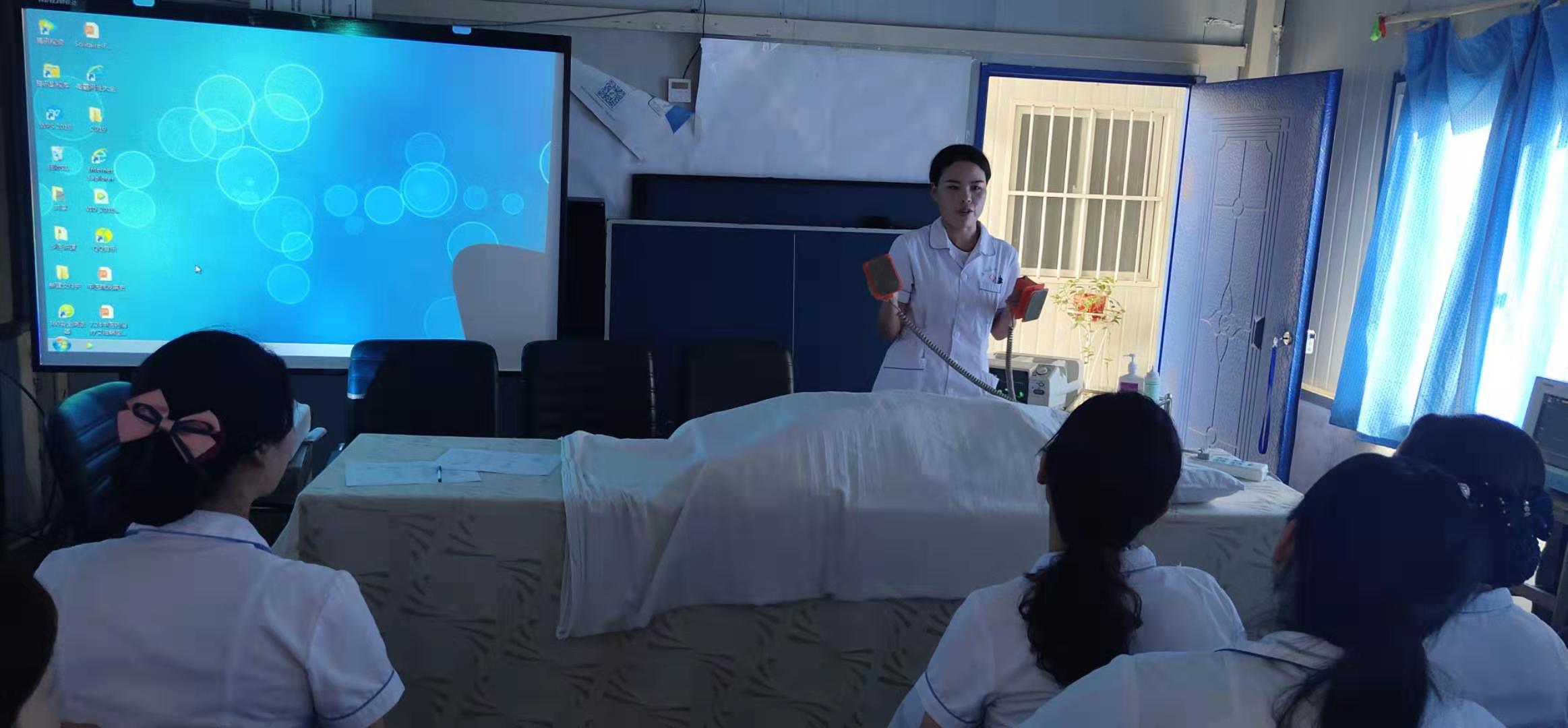 培訓(xùn)由縣中醫(yī)院ICU護士崔陽陽以及ICU護士趙勤進行理論授課及實操演練。