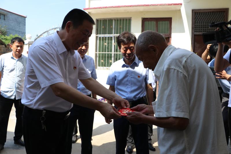 在蔣橋村王方正家,閆立超同他進(jìn)行了親切地交談,詳細(xì)詢問他現(xiàn)在的生活情況。看到他身體健康,閆立超非常高興,祝福他健康長(zhǎng)壽,并囑咐其家人一定要照顧好老人。據(jù)介紹,王方正是解放戰(zhàn)爭(zhēng)老復(fù)原軍人,參加過淮海戰(zhàn)役等戰(zhàn)斗,現(xiàn)年91歲。