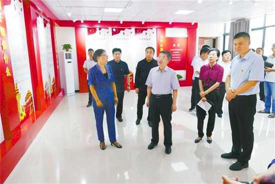 皇甫立新首先來到槐店回族鎮(zhèn)海樓社區(qū)。海樓社區(qū)位于縣城中心,是全縣政治經(jīng)濟文化中心。走進社區(qū),路兩旁紅旗飄飄,新時代、新思想、新目標、新征程等具有時代特色的宣傳畫繪制在兩邊的墻壁上。社區(qū)廣場上“百村綜合治理辦公室”的牌子特別醒目,社區(qū)辦公室有關百村綜合治理的規(guī)章制度一應俱全?;矢α⑿聦巧鐓^(qū)的工作給予充分肯定,并就工作中存在的問題給予指正,要求社區(qū)黨支部突出建好、管好、用好村委黨員會議室,突出主題,唱響主旋律。