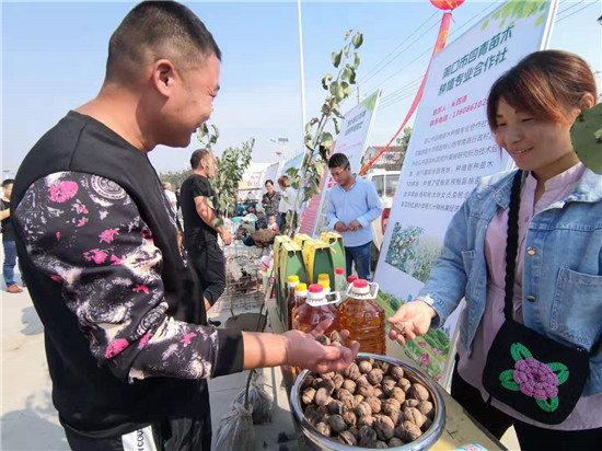 一問(wèn)一答間,爽朗的笑聲響徹節(jié)日上空,農(nóng)民們喜笑顏開(kāi),傳遞出濃濃的幸福。大棗、黑木耳、小麥粉、粉條等西華縣各具特色的農(nóng)產(chǎn)品紛紛亮相,除了展示各自的“增收實(shí)力”,也展示出幾年來(lái)發(fā)展農(nóng)業(yè)特色經(jīng)濟(jì)的豐碩成果。“政府搭臺(tái),農(nóng)民唱戲,每年一度的農(nóng)民豐收節(jié)既是農(nóng)民歡樂(lè)的節(jié)日,也是展銷(xiāo)農(nóng)產(chǎn)品的紐帶平臺(tái),今天我們奉母鎮(zhèn)展示了本地原生態(tài)粉條和純糧美酒,希望借助豐收節(jié)機(jī)遇,拓寬銷(xiāo)路實(shí)現(xiàn)農(nóng)民增收。”西華縣奉母鎮(zhèn)黨委書(shū)記陳鵬告訴記者。