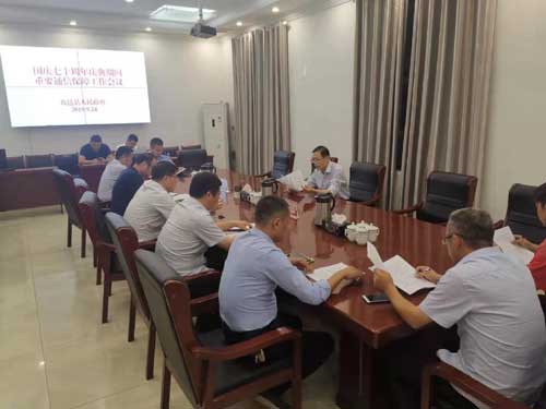 9月24日晚上,鹿邑縣政府副縣長翟杰組織召開國慶七十周年慶典期間重要通信保障工作推進會。會議迅速傳達學習了周口市政府有關加強通信保障的通知精神,對有關工作進行安排部署。