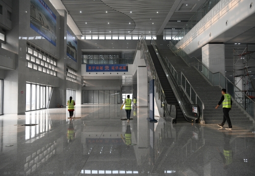 11月8日下午,記者再次來到鄭阜高鐵周口東站,看到一片熱火朝天的施工景象。伴隨著高鐵即將開通,工人緊張施工,施工進(jìn)度一天一個樣,確保如期交付使用。圖一落客平臺進(jìn)入鋪油階段。圖二站前廣場緊張施工中。圖三候車大廳進(jìn)入精細(xì)化保潔。