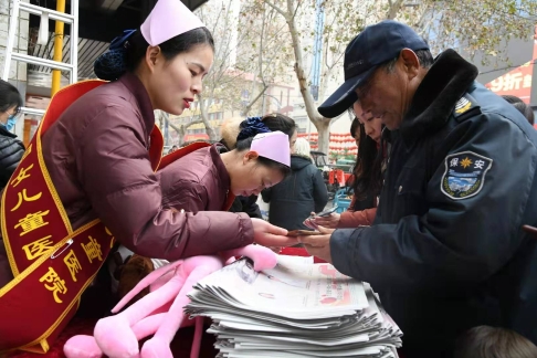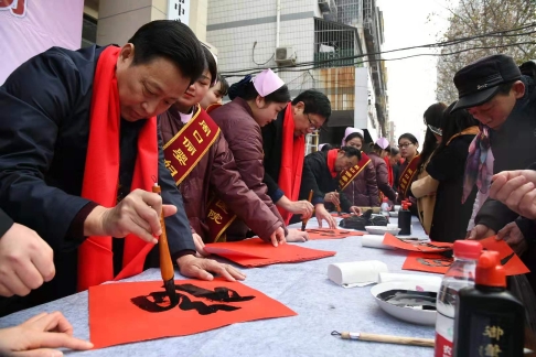 18日上午9時(shí)30分,位于新建街的周口儷嬰婦女兒童醫(yī)院門前喜氣洋洋,張燈結(jié)彩,熱鬧非凡,儷嬰婦女兒童醫(yī)院邀請(qǐng)市書協(xié)、川匯區(qū)書協(xié)的書法家們,在門前為“送福送健康暨書法家義寫春聯(lián)”活動(dòng)舉行了簡(jiǎn)短的儀式,隨即活動(dòng)展開,一邊是儷嬰婦女兒童醫(yī)院的專家們將坐診臺(tái)搬到門前,細(xì)致地為來往的居民免費(fèi)量血壓、把脈等義診,一邊擺下10多張桌子和筆墨紙硯,中國(guó)書協(xié)會(huì)員游保峰,著名書法家、川匯區(qū)書協(xié)終身名譽(yù)主席李大慶,書法家馮干敏、李輝、李國(guó)斌及川匯區(qū)書協(xié)主席李尊杰,市書協(xié)副主席劉廣巖,川匯區(qū)書協(xié)副主席兼秘書長(zhǎng)杜忠義,副主席曾祥峰、何楠,著名書法家寇成義等書法家們,展開大紅的紙張,揮毫潑墨,飄著墨香的福字和一對(duì)對(duì)大紅的春聯(lián),帶著新春的祝福,送到居民手里,一波波居民到自己喜愛的書法家面前,喜討福字和春聯(lián),開心的喜悅洋溢著臉上……