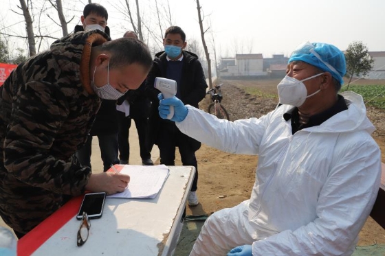 起初,苑統(tǒng)俊配合村干部在村里宣傳疫情防控政策、方法,1月25日,我省啟動(dòng)一級(jí)應(yīng)急響應(yīng),港區(qū)迅速做出響應(yīng),在轄區(qū)內(nèi)各個(gè)村莊社區(qū)設(shè)置疫情監(jiān)控點(diǎn),限制人員流動(dòng),全天候監(jiān)測(cè)進(jìn)出人員身體狀態(tài)。苑統(tǒng)俊擔(dān)起監(jiān)控點(diǎn)村醫(yī)的職責(zé),負(fù)責(zé)該村一至四組的疫情防控。他每天騎電動(dòng)車前往孫莊村監(jiān)測(cè)點(diǎn)值守,為過(guò)往人員測(cè)量體溫、觀察外地返鄉(xiāng)人員狀態(tài)、登記觀察正處在隔離期的從湖北、武漢返鄉(xiāng)人員體溫?cái)?shù)據(jù),為鄉(xiāng)村干部開(kāi)展防控工作提供技術(shù)支持。