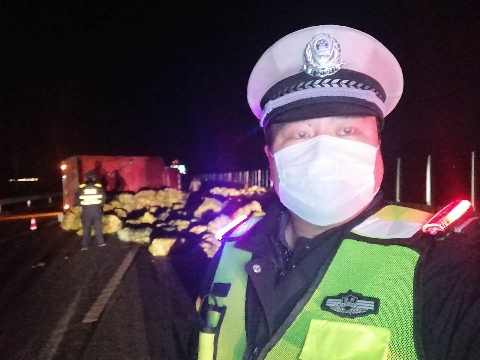 2月15日晚,一輛滿載著蔬菜的大貨車在大廣高速周口轄區(qū)內(nèi)側(cè)翻,一車娃娃菜傾倒在高速路上,占據(jù)了兩個車道,急需救援。市公安局交通管理支隊高速二大隊民警接警后迅速救援,幫助運(yùn)送保障物資的司機(jī)先去送貨,再回來處理事故。
