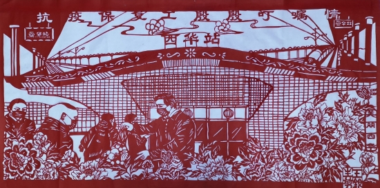 “我在為縣委林書(shū)記高鐵站送工創(chuàng)作一幅剪紙作品,你看看效果怎么樣?!苯?,西華縣奉母鎮(zhèn)剪紙藝人王銀生拿著剛剛創(chuàng)作的剪紙作品讓“疫情防控小分隊(duì)”提意見(jiàn)。